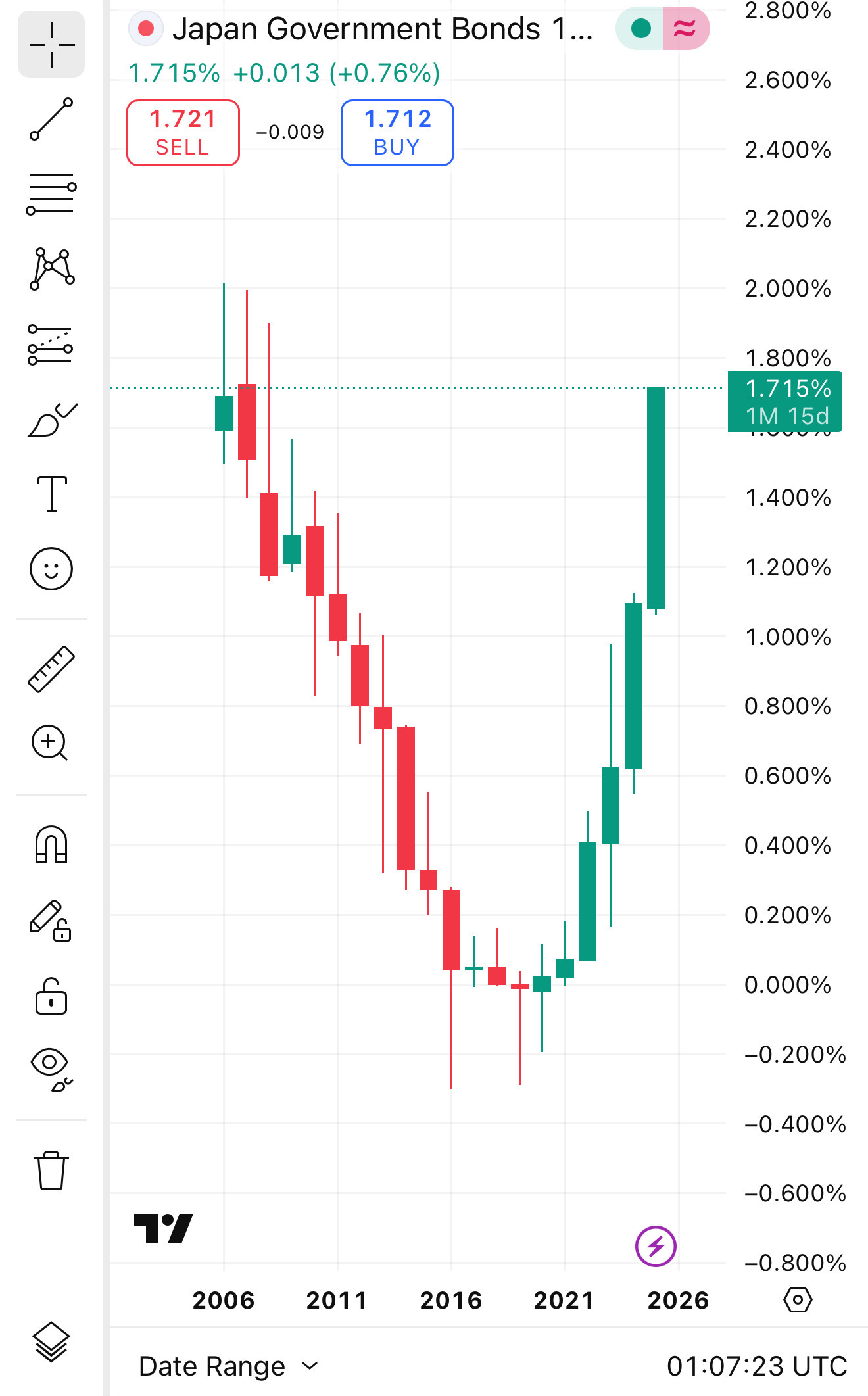 겉보기에 평범하던 11월의 어느 월요일, 일본 10년 만기 국채(JGB) 금리가 1.71%에 닿았다. 대부분의 관찰자에게 이는 일일 시장 데이터 속 기술적 각주에 불과했을지 모른다. 그러나 글로벌 금융의 복잡한 배관을 이해하는 이들에게 그것은 젠가 탑의 핵심 블록이 스르르 빠져나가는 소리였다.
