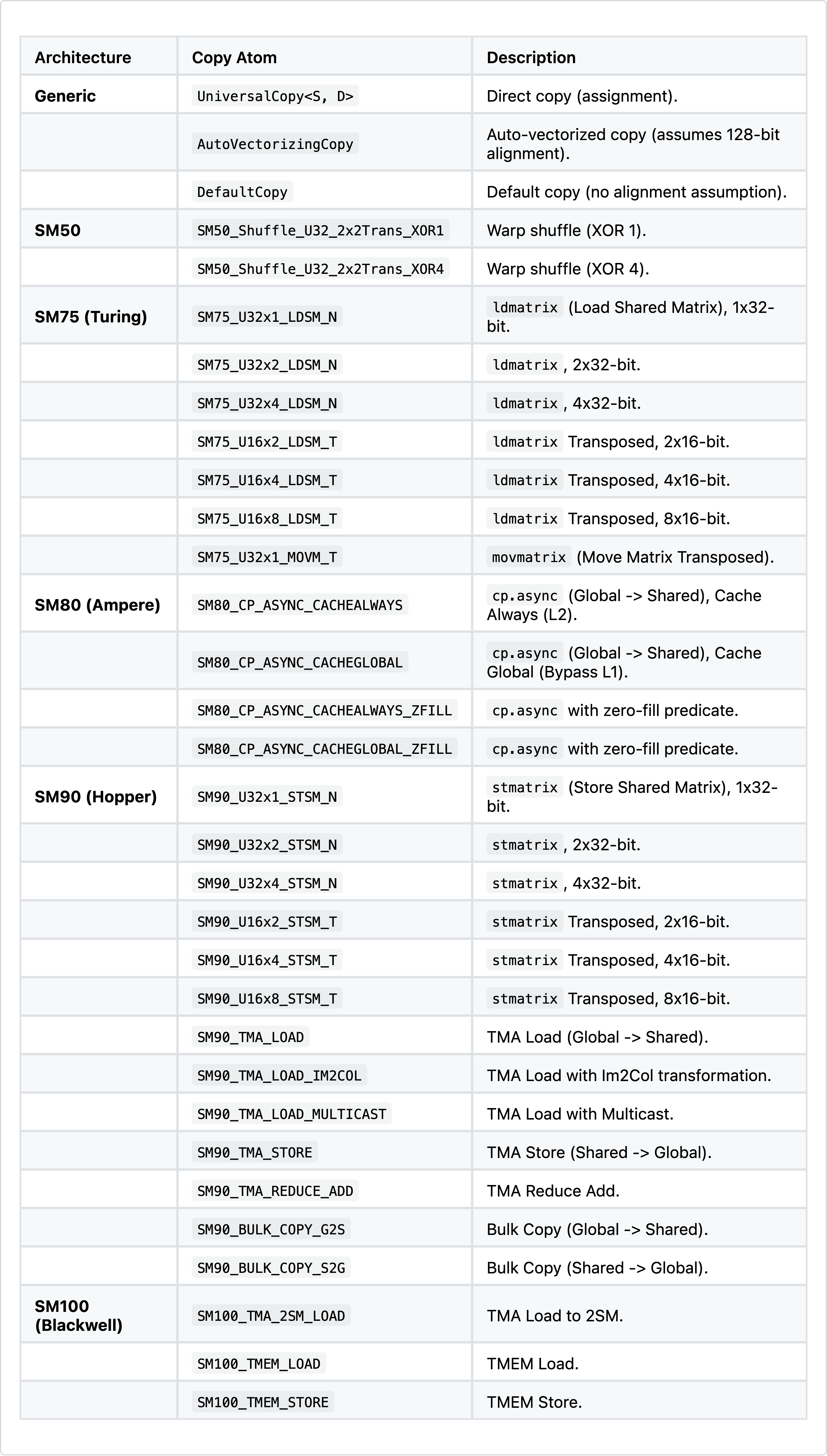 추가 정보는 CUTLASS 레포의 cutlass/include/cute/arch/copy_sm90_tma.hpp 및 copy_sm100_tma.hpp에서 찾을 수 있다.