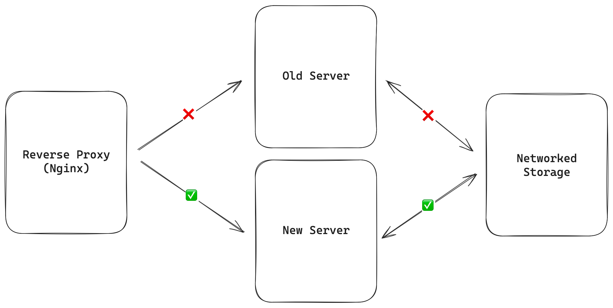 대중적 믿음과 달리, 몇 초 동안 스토리지 볼륨을 구 서버에서 분리(detach)해 신 서버에 붙이는 동안(reverse proxy가 연결을 유지하도록) 리버스 프록시의 도움을 받으면 DB를 호스팅하는 머신도 다운타임 없이 업그레이드할 수 있습니다.