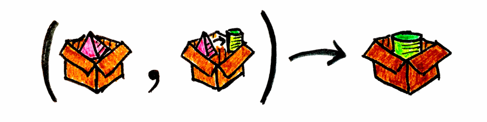눈치채셨겠지만, Box<T>는 Scala의 Option이나 Haskell의 Maybe를 단순화해 복제한 것입니다. 이는 ADT(대수적 데이터 타입, Algebraic Data Type)로, 다른 코프로덕트(coproduct)와 마찬가지로 오직 하나의 값만 가질 수 있습니다. Empty 또는 Full<T> 중 하나죠. Box 컨텍스트에는 숫자 1, “hi”라는 단어, 심지어 파란색 같은 것도 넣을 수 있습니다.