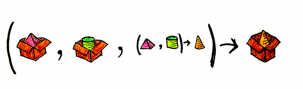 kotlinval maybePyramid: Box<Pyramid> = getPyramidFromDB("MyPyramid") val maybeCylinder: Box<Cylinder> = getCylinderFromWS("MyCylinder") Box.applicative().map2(maybePyramid, maybeCylinder, { t -> Cone(t.b.name) }) //Box<Cone>
