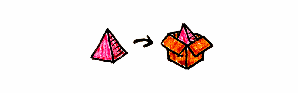 모나드(Monad)의 가장 큰 장점은, 박스 안에 박스가 생기는 것을 신경 쓰지 않고도 의존적인 중첩 연산을 다룰 수 있다는 점입니다. 모나드는 중첩된 컨텍스트를 평탄화(flatten)할 수 있고, 이는 강력한 능력입니다. 앞선 예제를 조금 바꾸면 문제가 보일 겁니다. 원통을 얻기 위해 피라미드가 필요하다고 상상해봅시다.