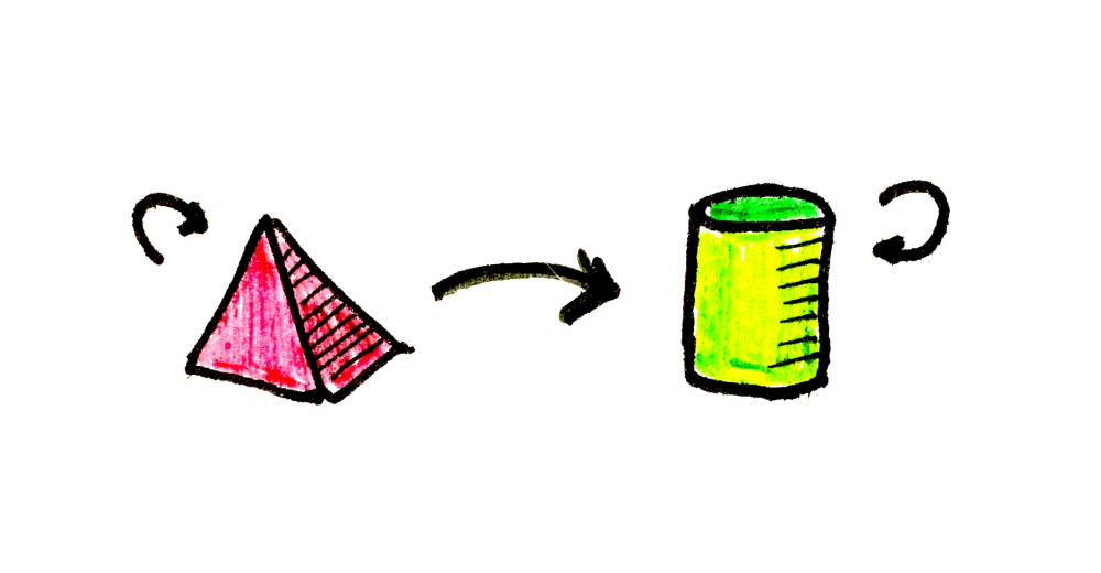 피라미드를 원통으로 바꾸는 방법을 아는, 가상의(정말 멋진) 범주를 가정해봅시다. 상상이 되나요? 이 범주를 C라고 부르겠습니다. 합성 법칙(항등성과 결합법칙)을 만족하는 한, C는 100% 유효한 범주입니다.