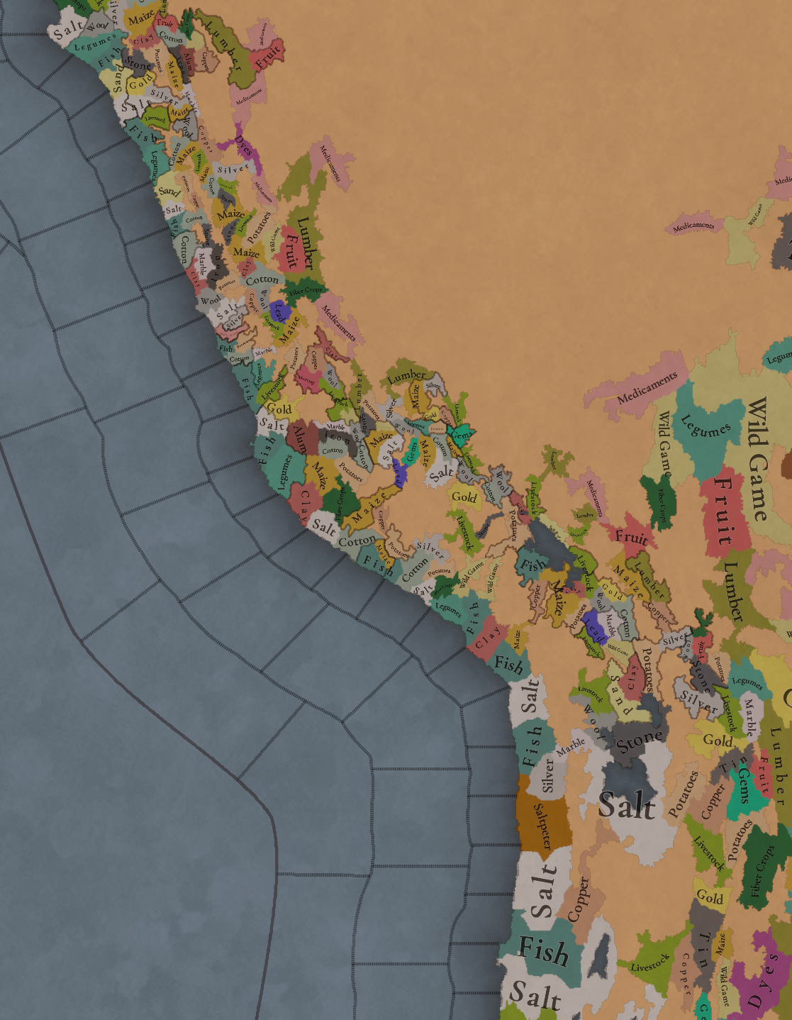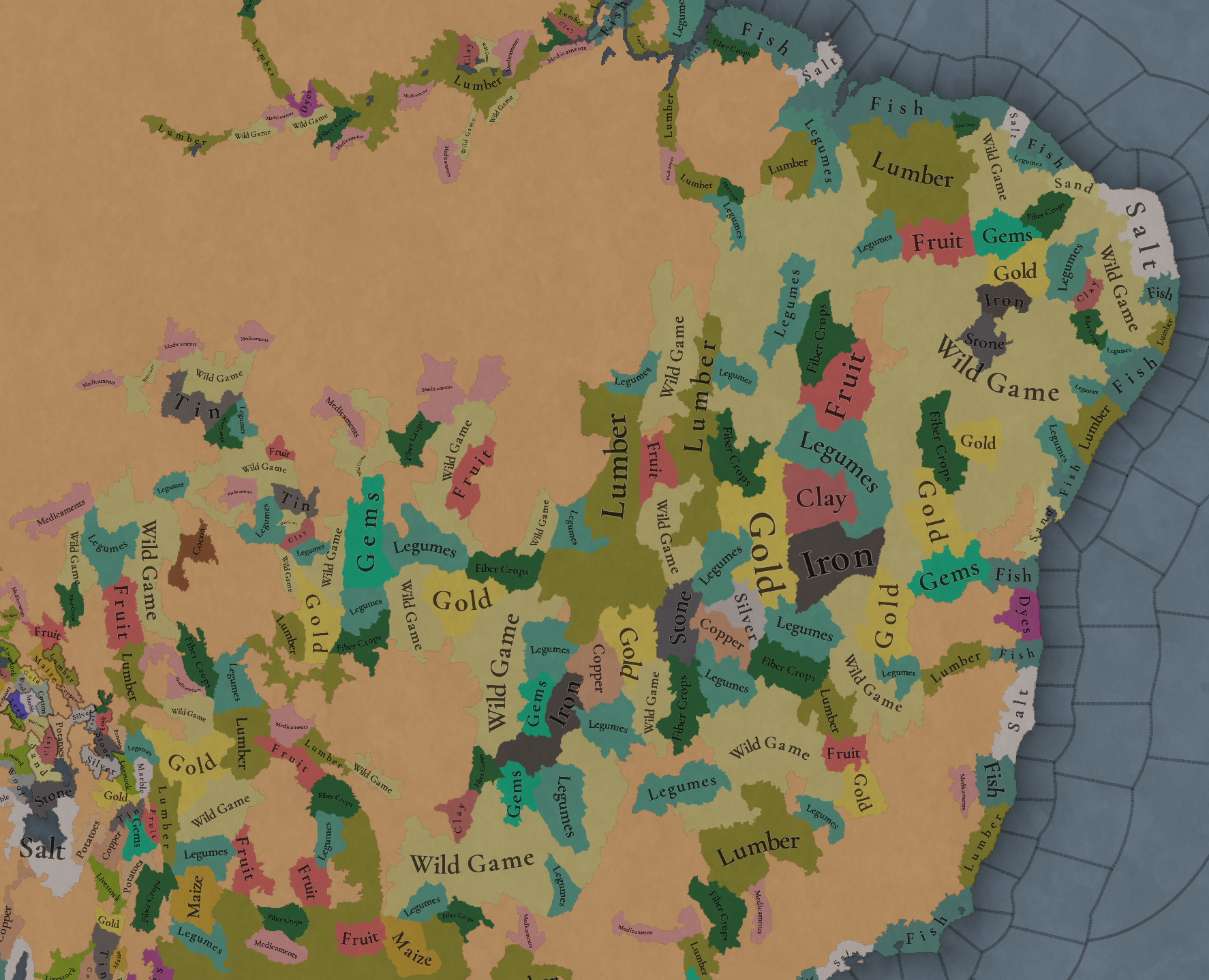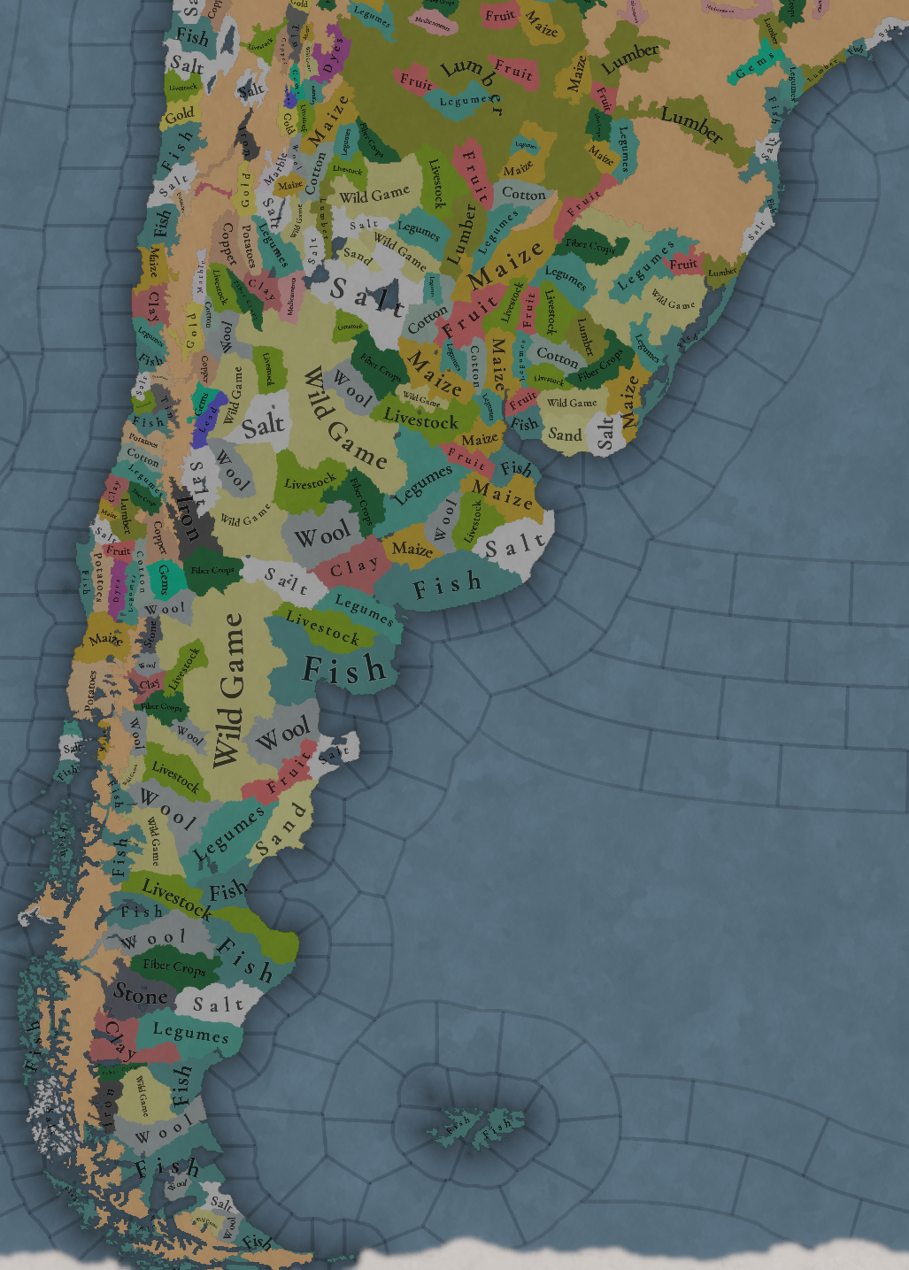 남아메리카엔 다양한 천연자원이 존재합니다. 일부 자원(예: 약재 등)이 타 지역보다 더 흔한 것도 보실 수 있습니다. 여러분의 피드백을 반영해 다양한 자원의 색상도 꾸준히 다듬어왔습니다!